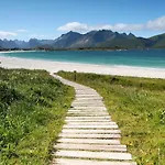 Das Ramberg Gjestegard liegt in einer 500 Meter Entfernung von einem Strand entfernt und bietet Zimmer mit Blick auf den das Meer.